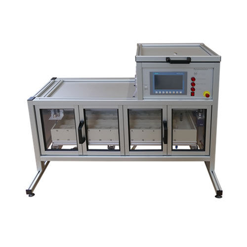 主控箱、樣品室、兩臺檢測線槽(每個線槽,12個樣品槽)、兩個超聲波傳感器、兩個自動噴嘴